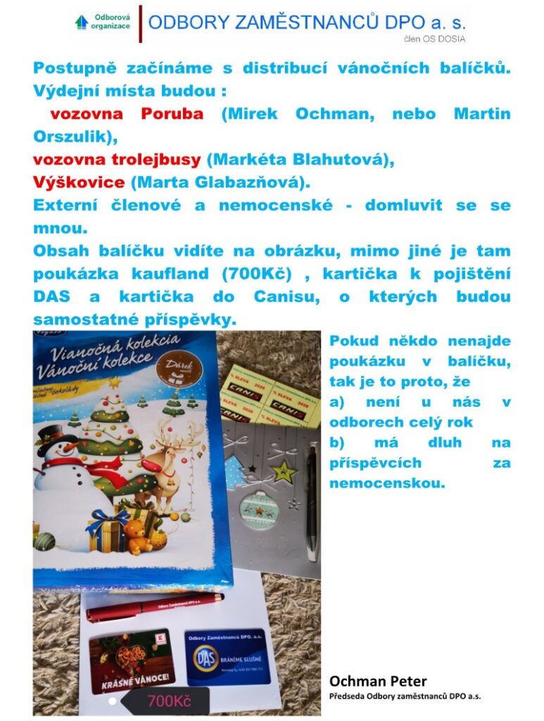 Distribuce vánočních balíčku pro naše členy