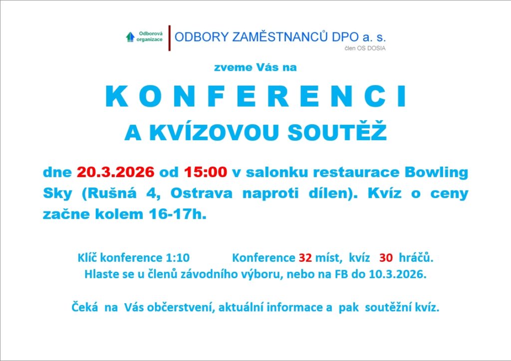 Vážené kolegyně, vážení kolegové, dovolujeme si vás pozvat na konferenci, která se bude konat 21.11.2025 v salónku restaurace Bowling SKY v Porubě. Po konferenci bude Kvízová soutěž.